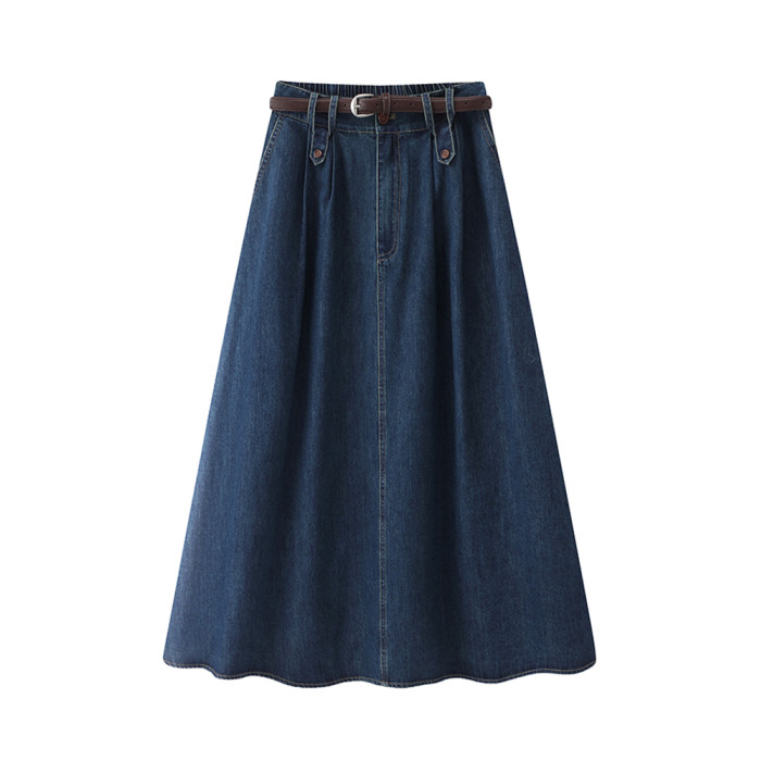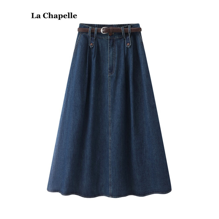 拉夏貝爾/La Chapelle高腰顯瘦牛仔半身裙女夏季新款復古a字長裙