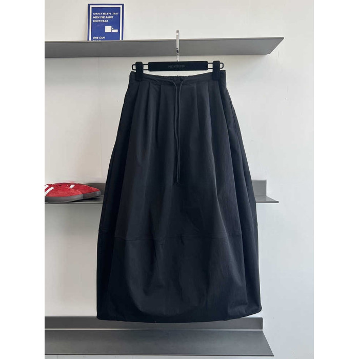 高腰花苞燈籠裙女夏季薄款大碼胖mm寬松顯瘦中長款半身裙過膝長裙