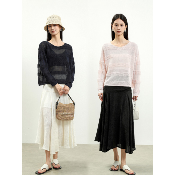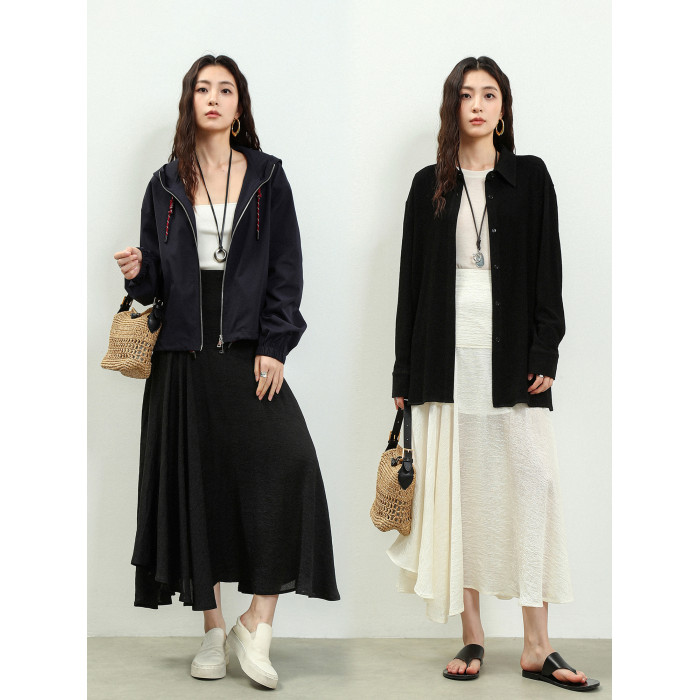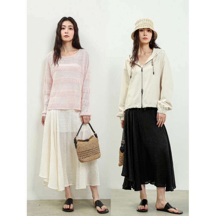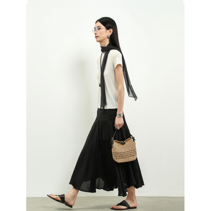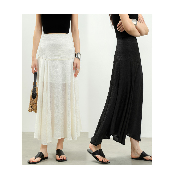 FANLE STUDIOS韓國進口褶皺醋酸仙氣飄逸高腰不規則裙擺半身裙女