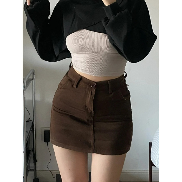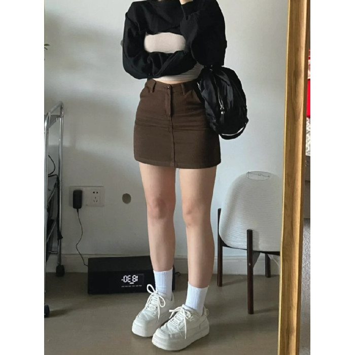 夏季新款咖啡色高腰牛仔短裙女大碼胖mm寬松顯瘦梨形身材a字半裙