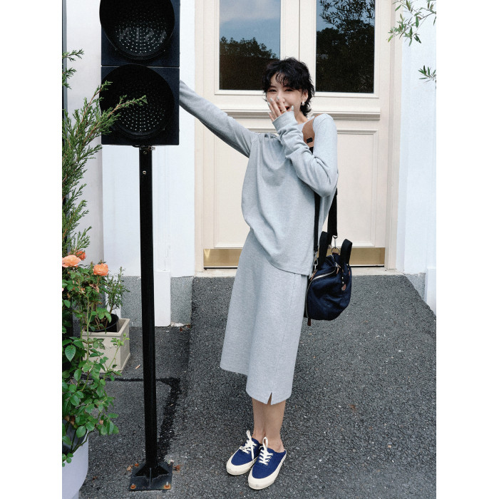 TT設計師【簡潔】純色休閒抽繩寬松直筒包臀半身裙女夏季2025新款