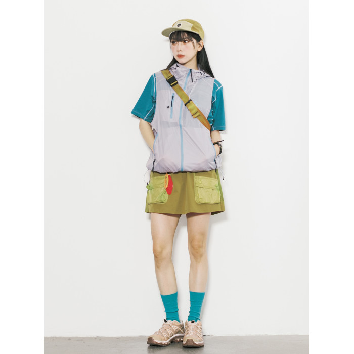 RCDB山系戶外拼色口袋工裝半身褲裙女輕量化透氣速乾運動A字短裙
