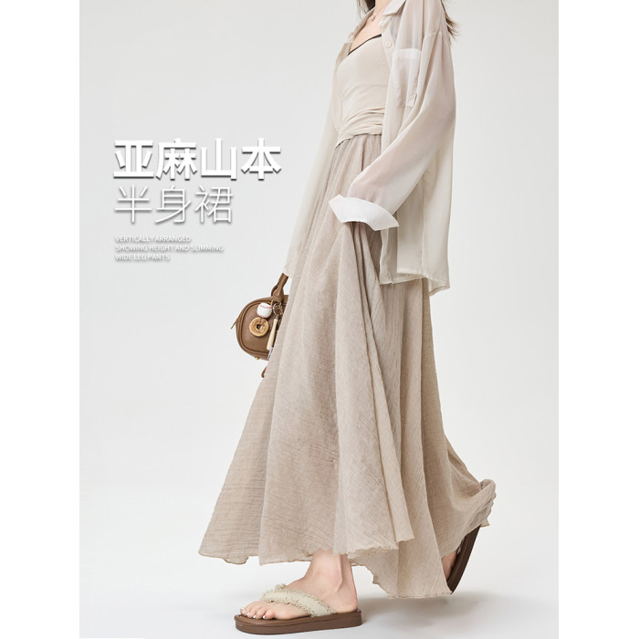 冰絲亞麻半身裙女夏季薄款2025新款山本裙子高腰顯瘦a字大擺繖裙