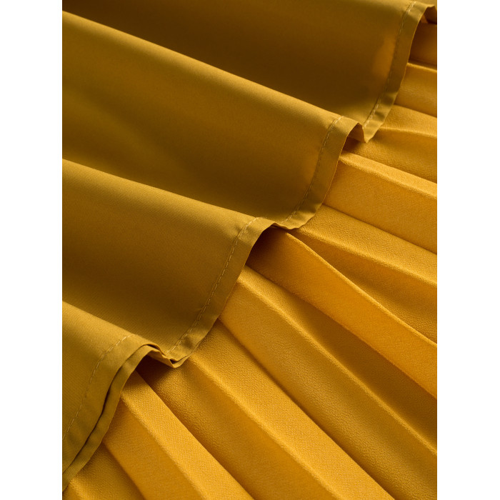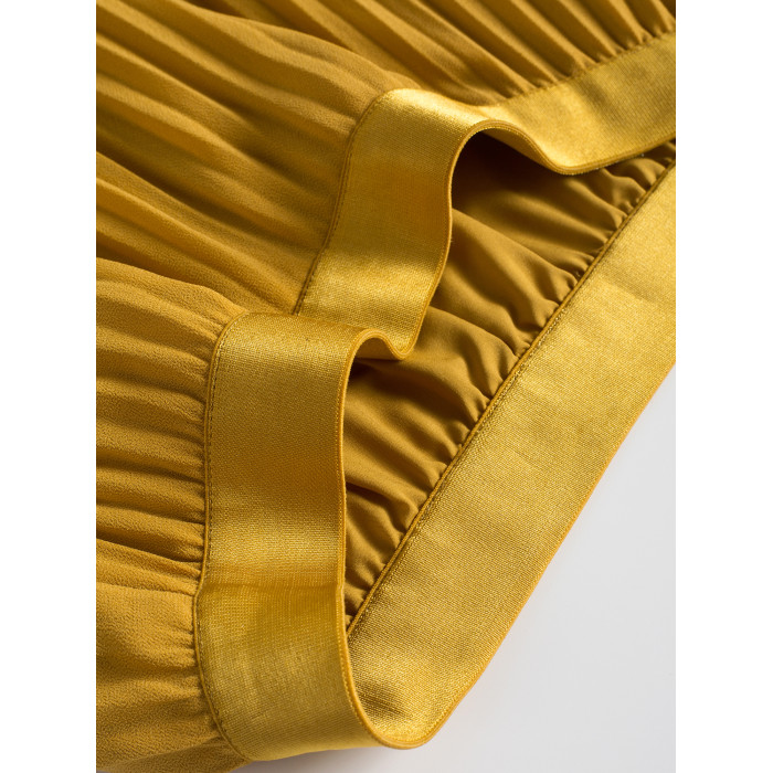 從腰部順垂而下,均勻細密的百褶設計,在步履移動間産生