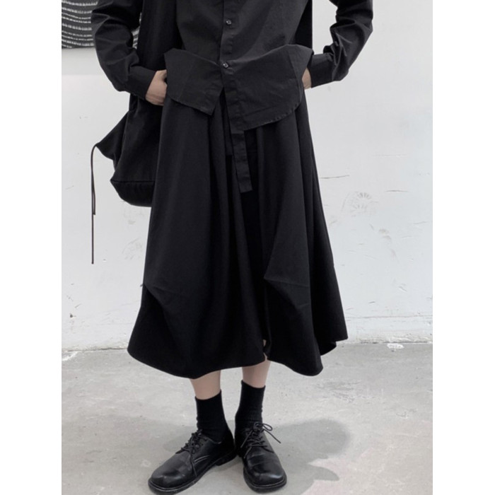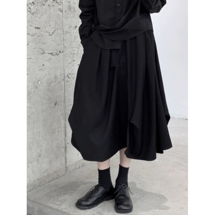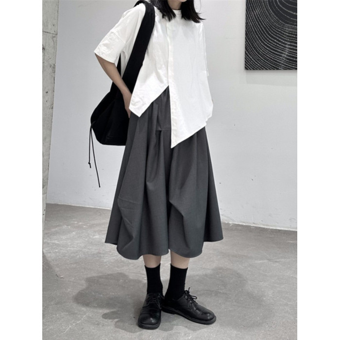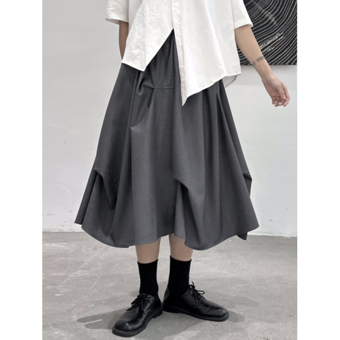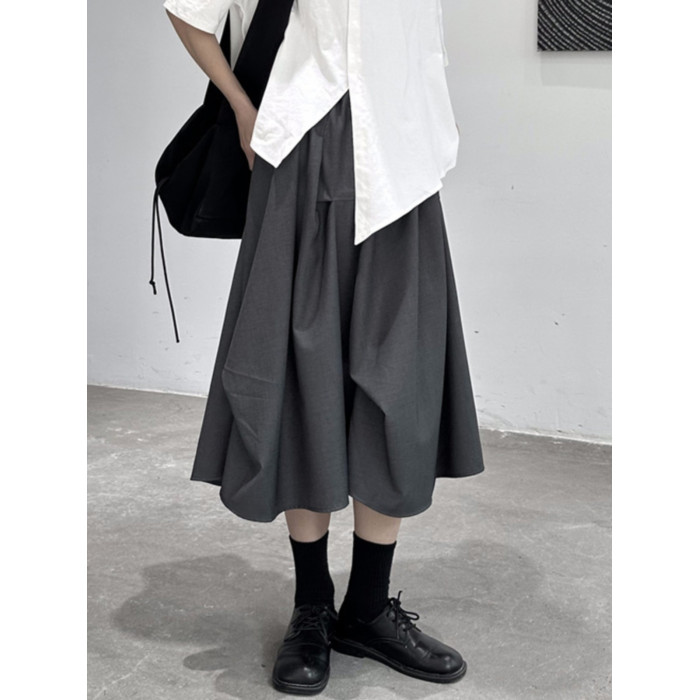 設計感山本暗黑灰色捏皺高腰顯瘦半身裙女2025夏季新款a字裙個性