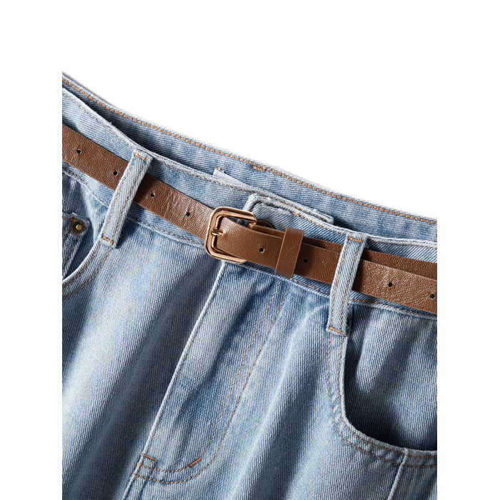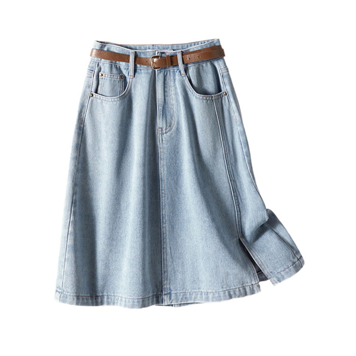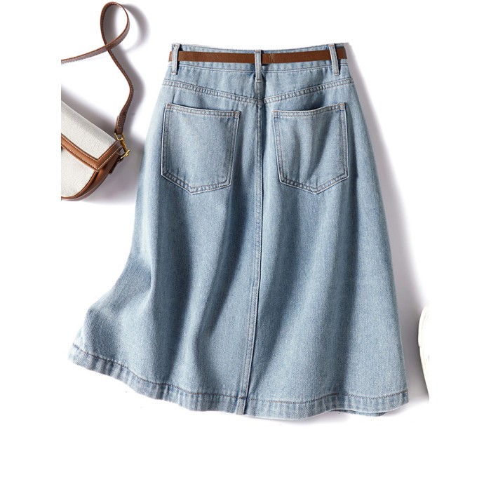 IHIMI休閒簡約百搭裙子女款2025夏季新款顯高顯瘦開叉牛仔半身裙