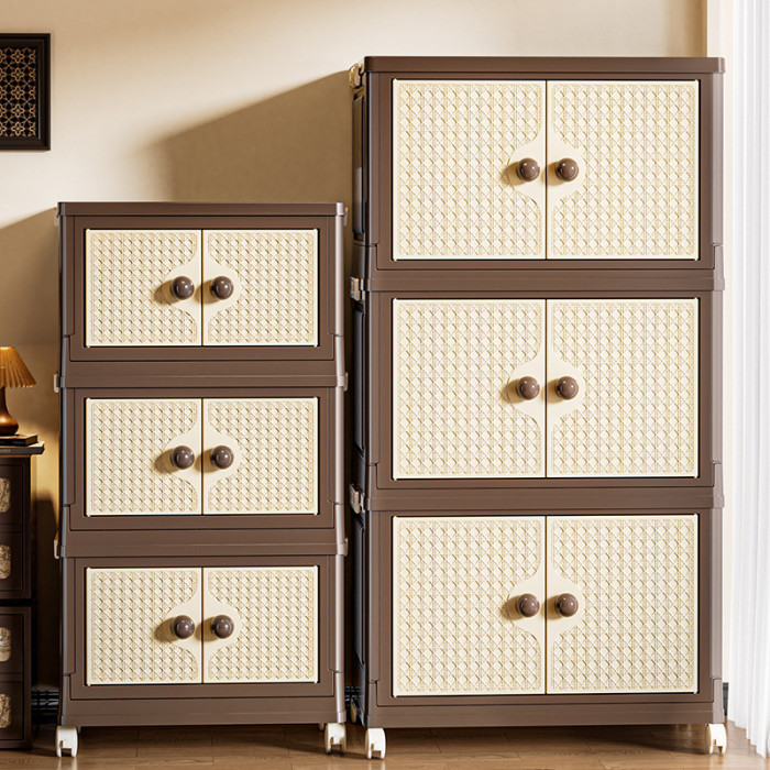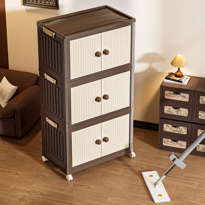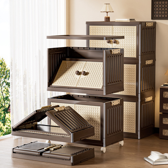 收納櫃中古風家用零食玩具可折曡收納箱開門式衣服被子多層儲物櫃
