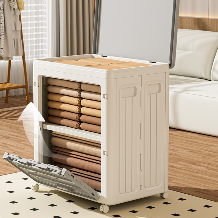 收納箱家用可折曡臥室衣物被子收納箱大容量翻蓋前開門整理儲物櫃