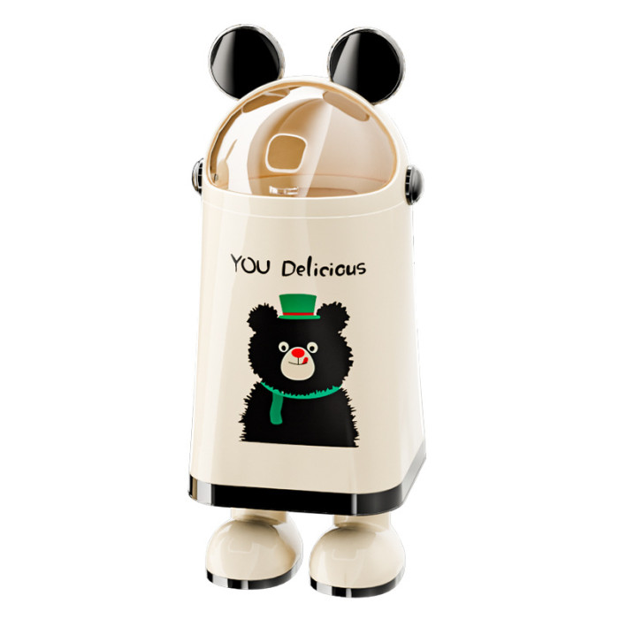 卡通垃圾桶-小熊印花+小熊耳朵白粉