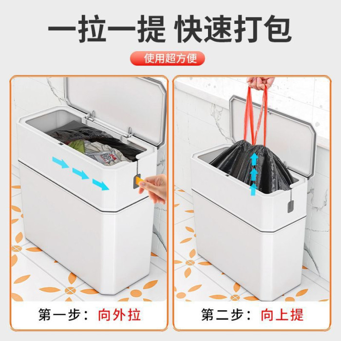 ins風家用抽繩自動打包垃圾桶壓圈按壓彈蓋高顔值衛生間夾縫帶蓋