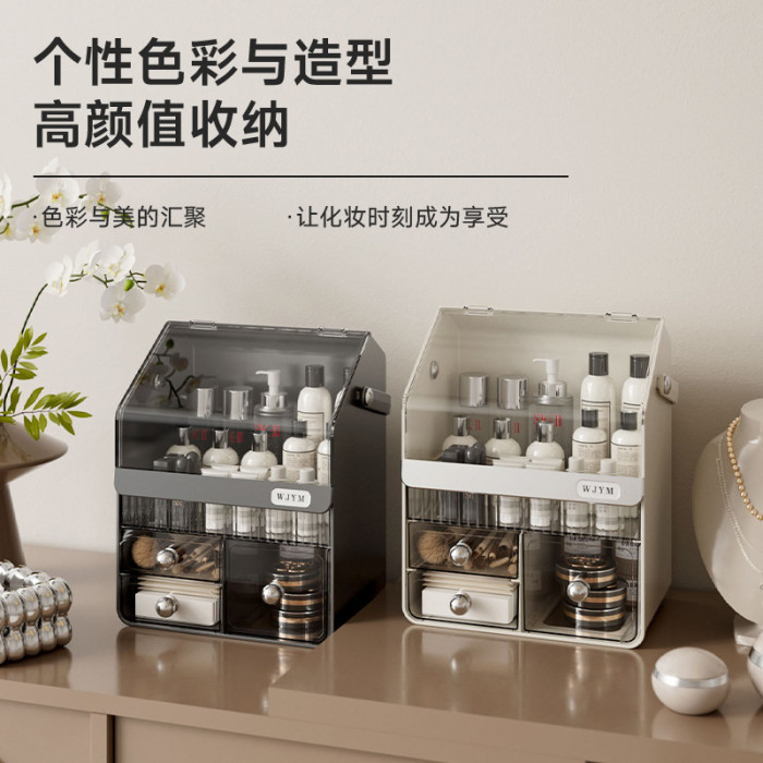 化妝品收納盒多功能大容量高級感口紅梳妝台護膚品防塵桌面置物架