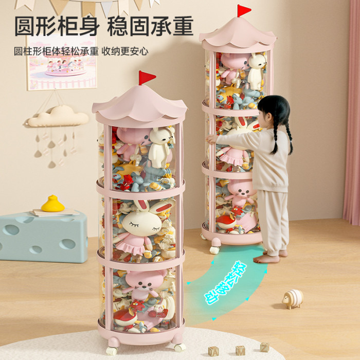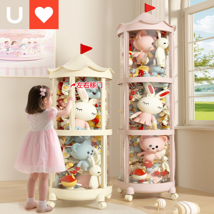 友耐毛絨娃娃收納桶家用防塵大容量可移動公仔儲物桶帶輪玩具收納