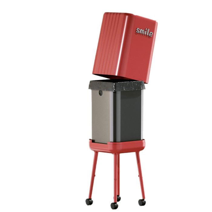 大號 8133垃圾桶【紅色】【免彎腰 無蓋】+輪子+字母