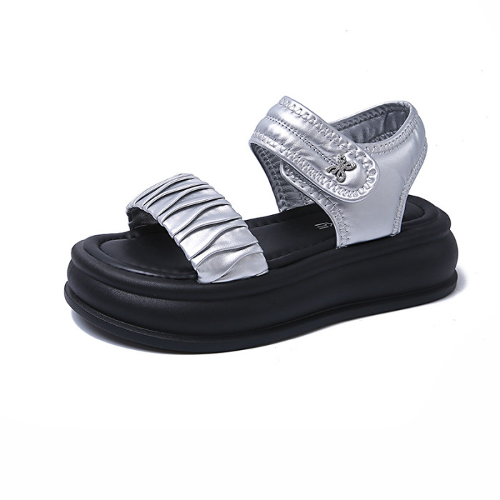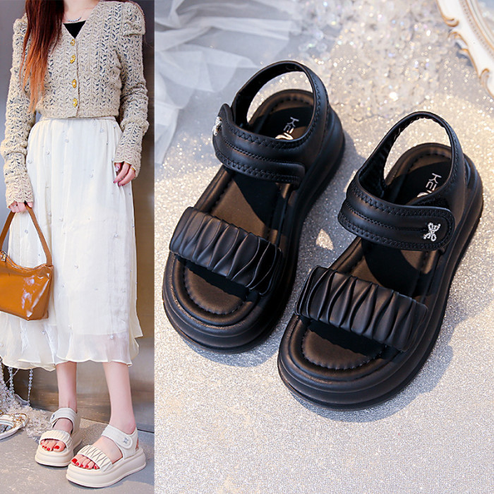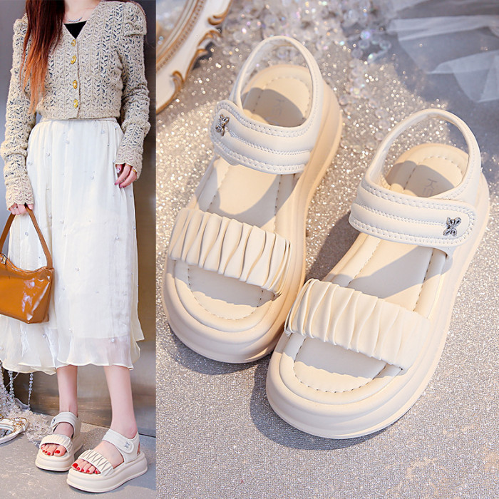 涼鞋女外穿2025夏季新款厚底松糕鞋配裙子平底踩屎感羅馬涼拖鞋子