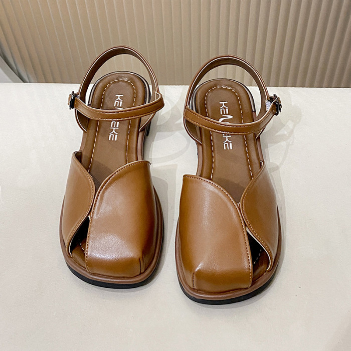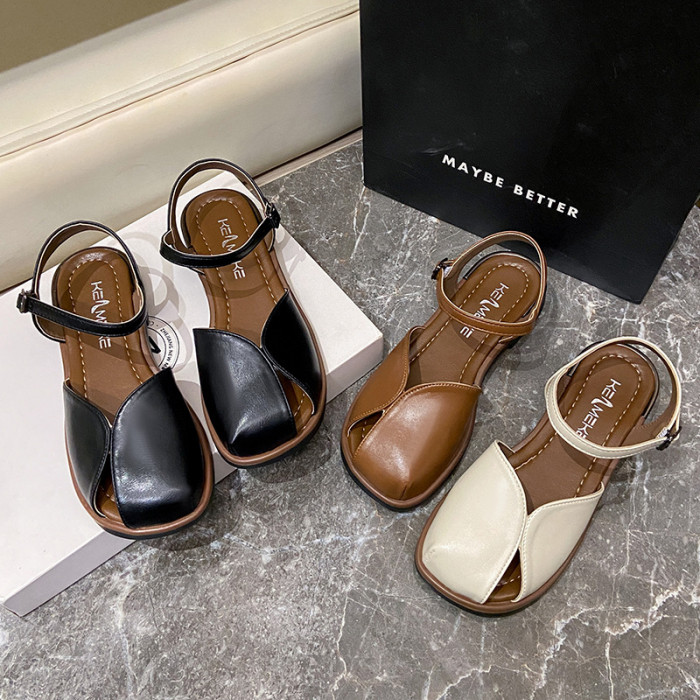 網紅時尚軟底涼鞋女夏外穿2025新款休閒羅馬沙灘鞋氣質包頭涼鞋