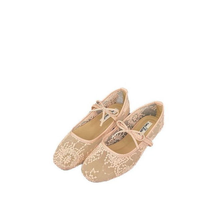 軟底不累腳春夏網紗綉花蝴蝶結單鞋女中式性感鏤空瑪麗珍鞋平底鞋