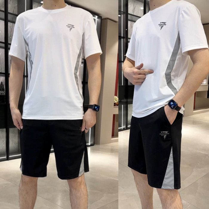 男士休閒運動套裝時尚冰絲短袖短褲兩件套透氣
