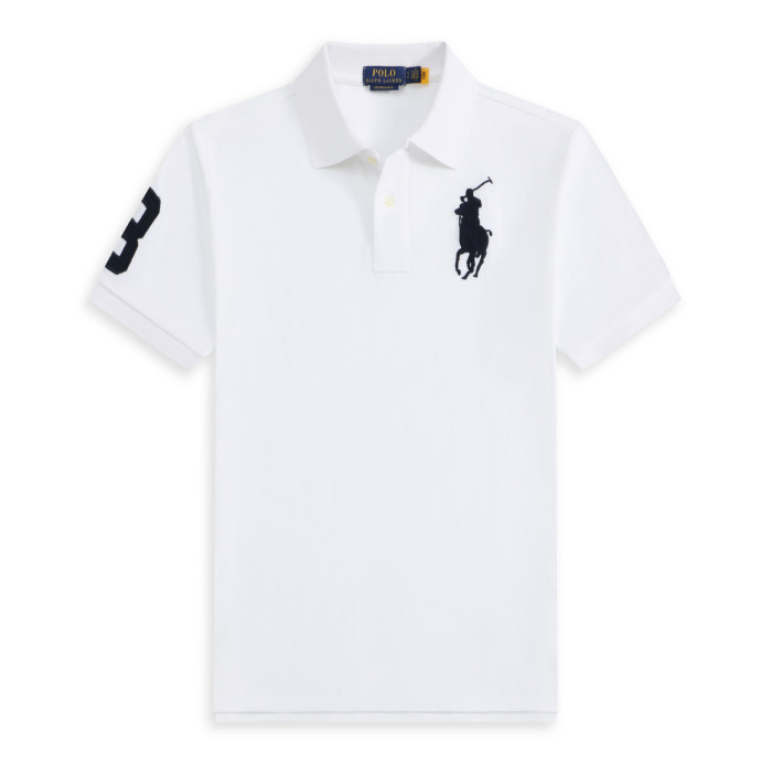 大馬標Polo衫男式商務休閒寬松大碼純棉純色刺綉短袖T恤