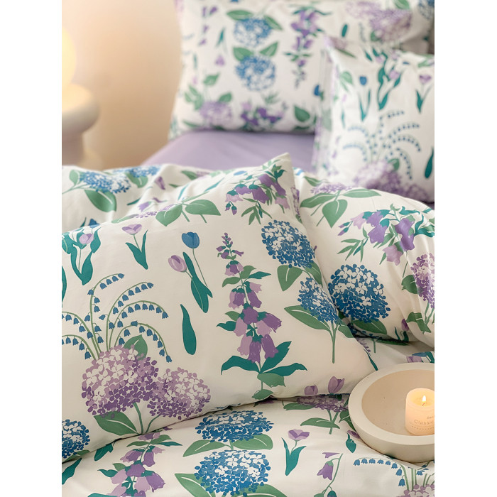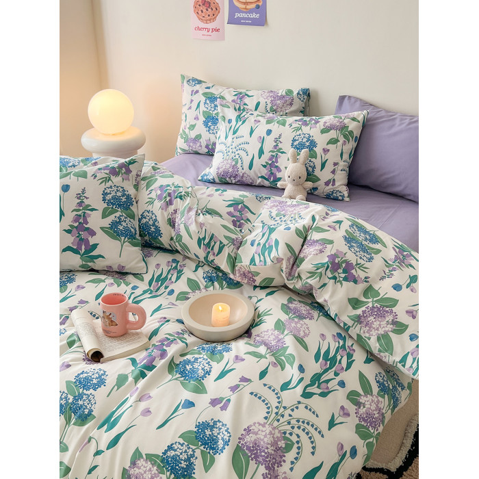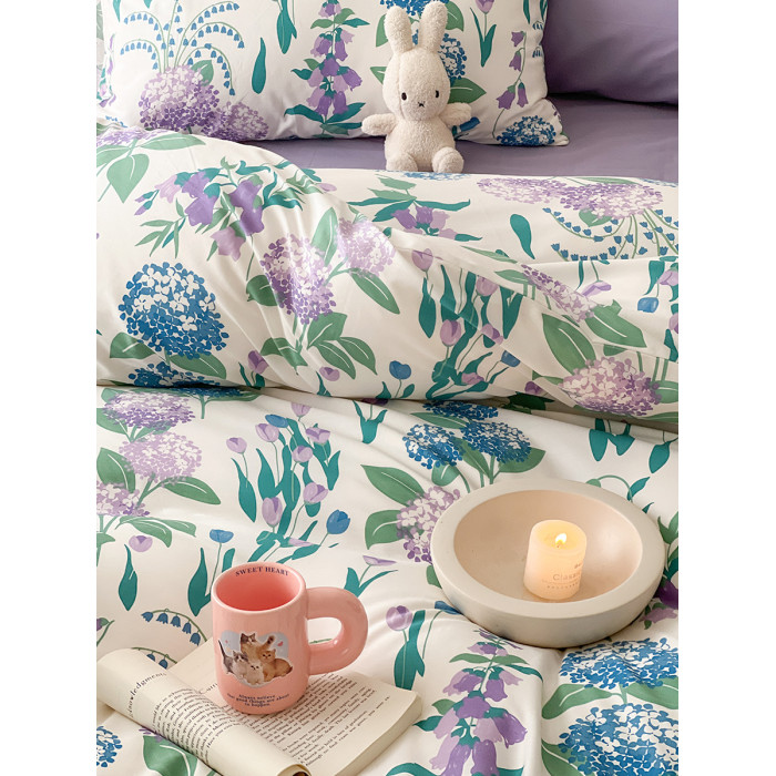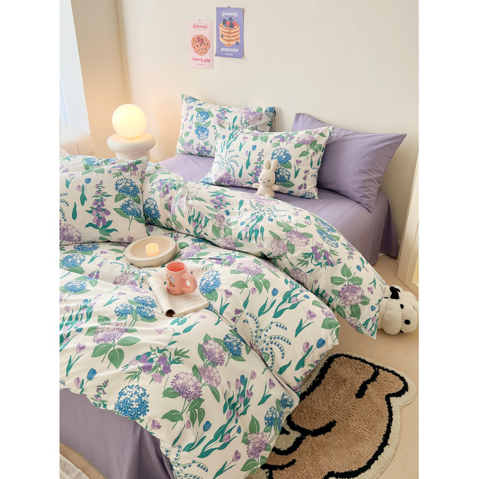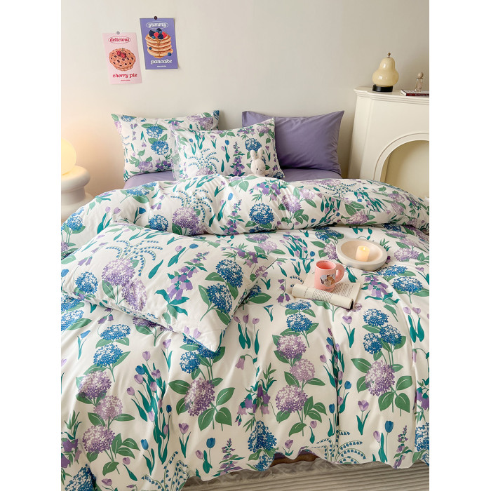 田園風植物花卉紫色純棉全棉被套單件宿舍被罩四件套150*200*230c