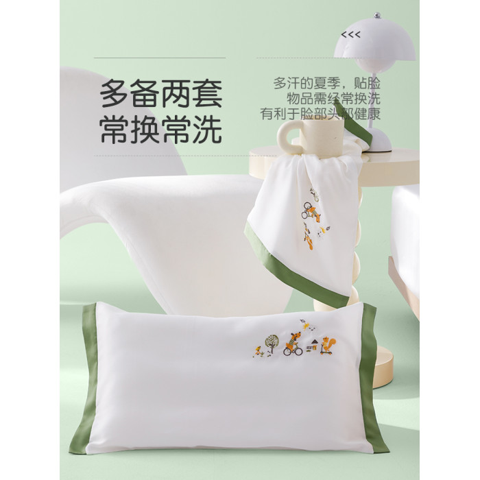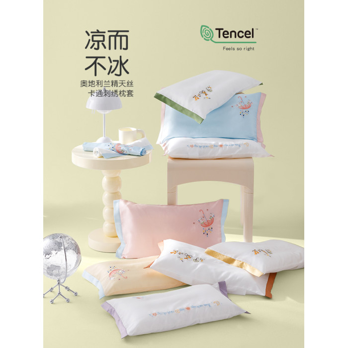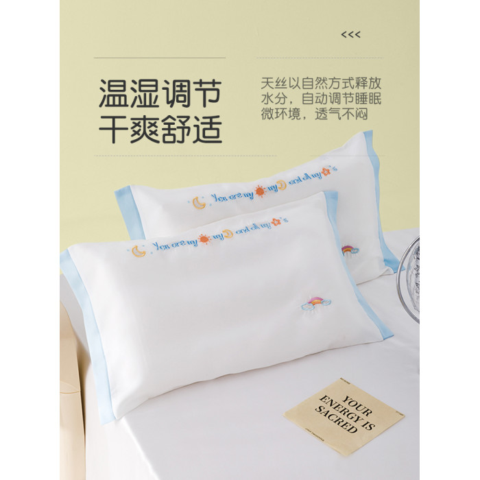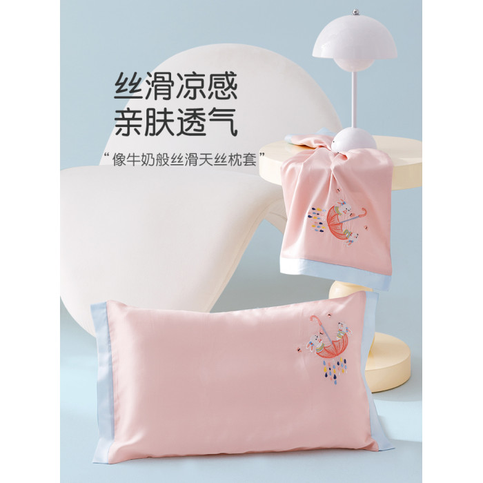 米蘇刺綉天絲枕頭套兒童枕套冰絲乳膠枕用單個單人學生寶寶可愛夏
