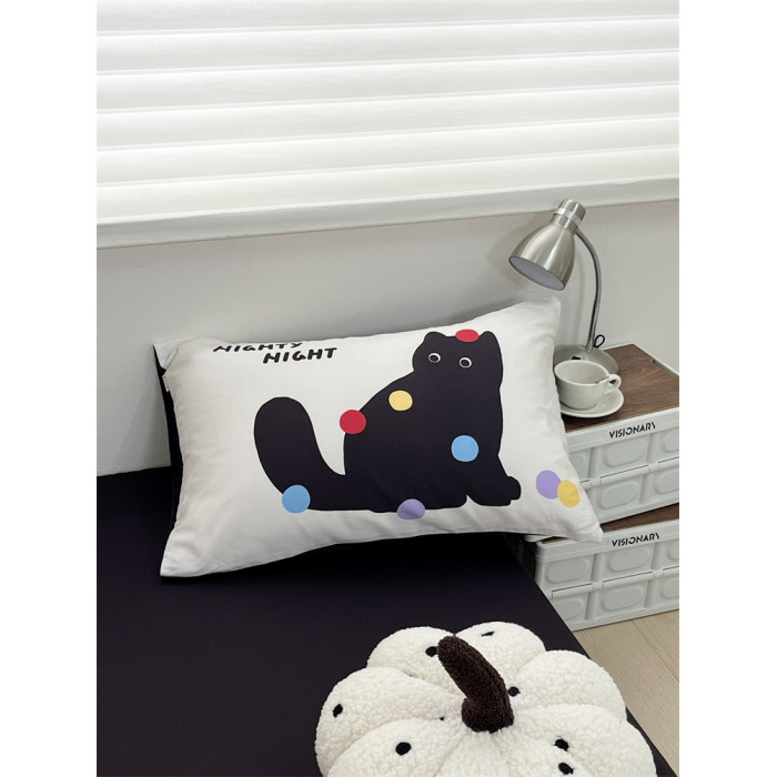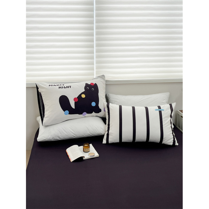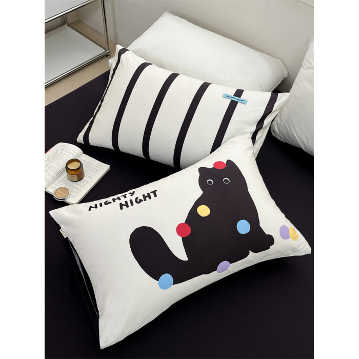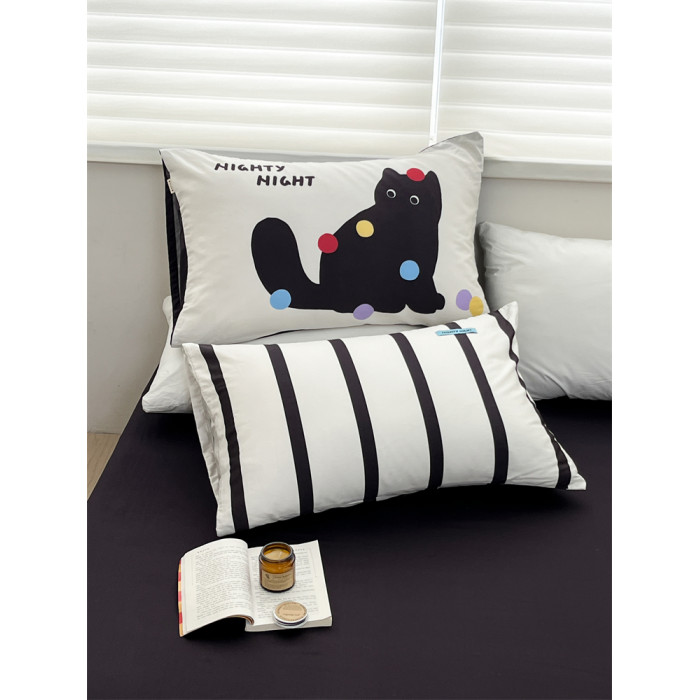 黑貓戯法 魔法小黑貓原創設計60S長絨棉枕套條紋全棉枕芯罩單衹裝