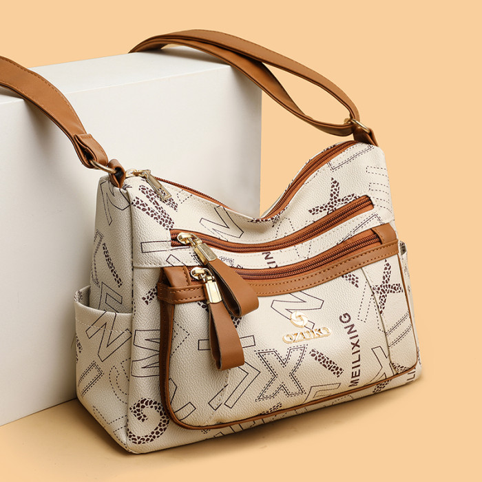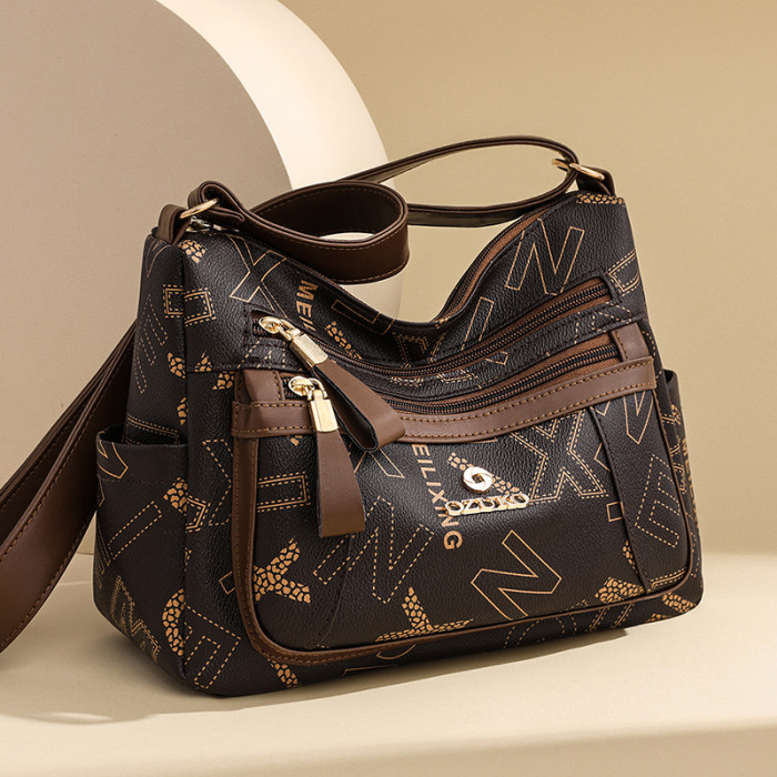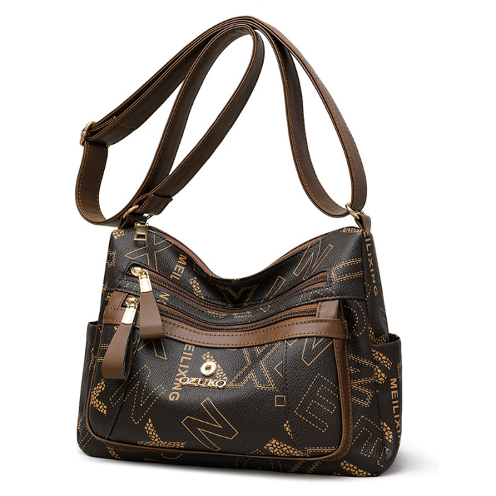 媽媽軟皮質感包包皮多層新款2024單肩精緻包大容量女包女真斜後背包