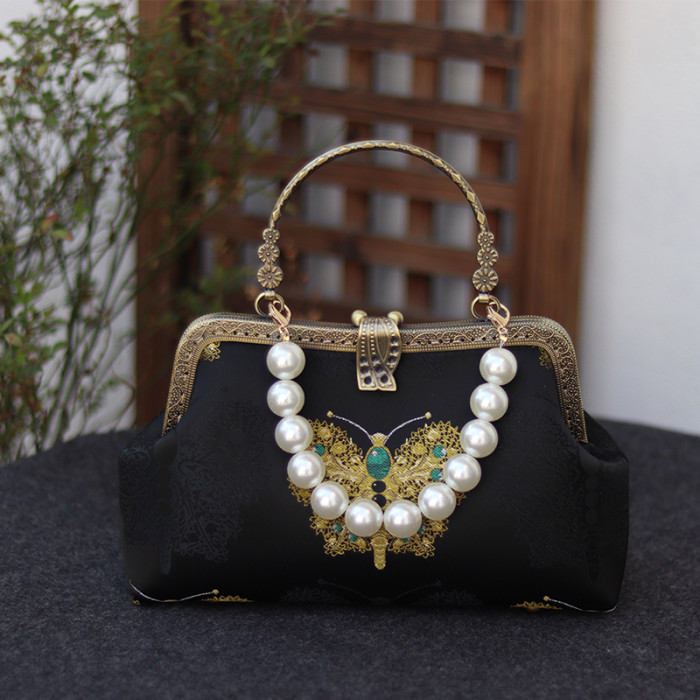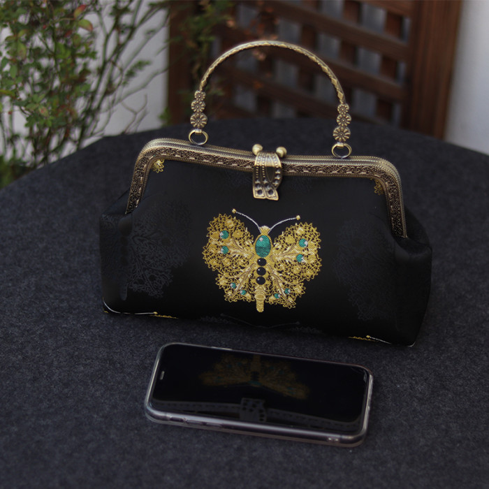 2025新款新中式宋錦提花面料高檔真絲口金包旗袍手提斜背百搭女包