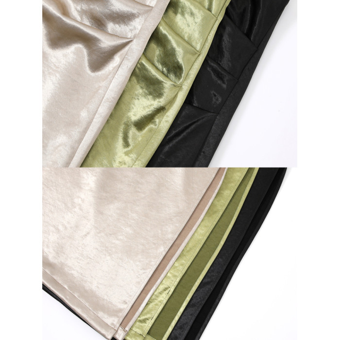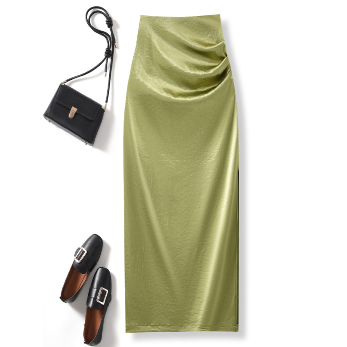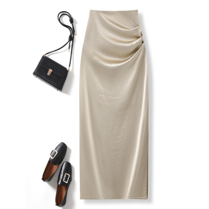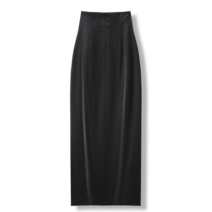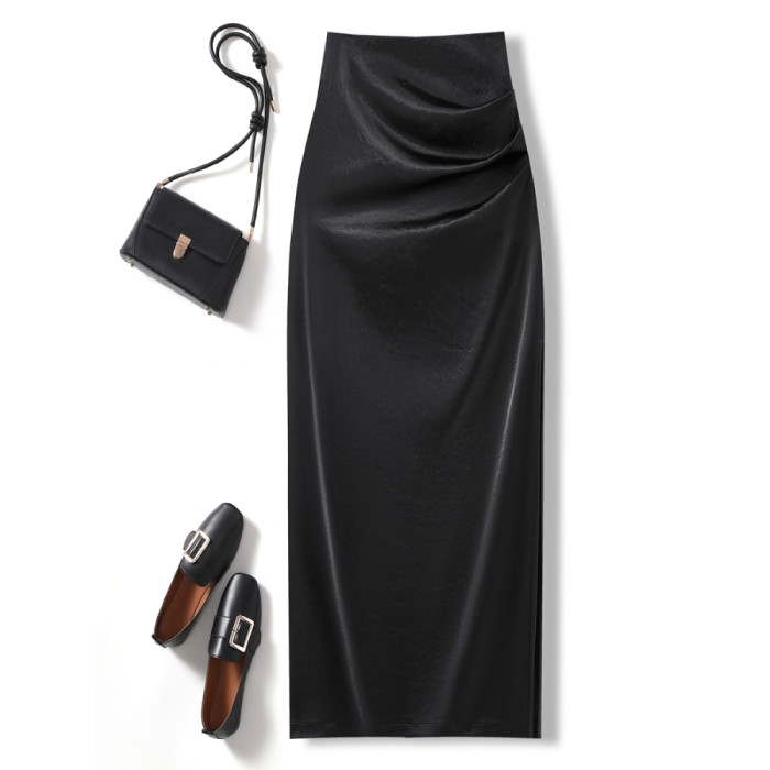 醋酸緞面半身裙修身顯瘦測開叉半身裙女高腰百搭裙包臀薄款直筒裙