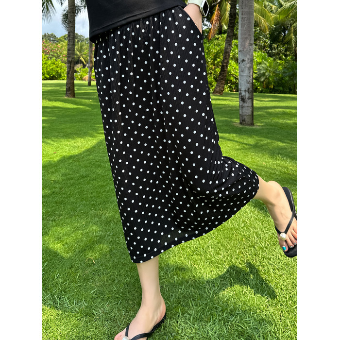 遮胯顯瘦冰絲波點裙中長款大碼女裝夏季200斤胖妹妹mm寬松半身裙