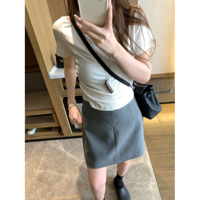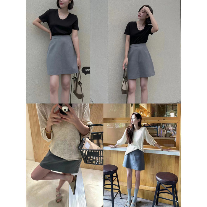 FANLE STUDIOS(進口面料) 百搭休閒時髦抗皺高腰顯瘦a字短裙女