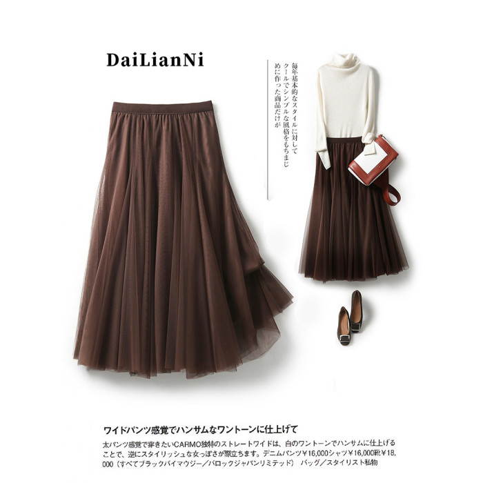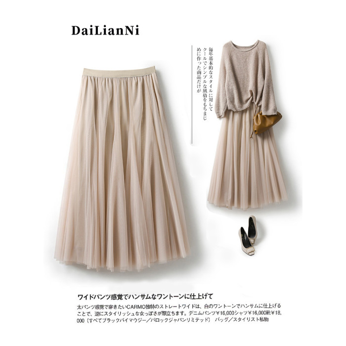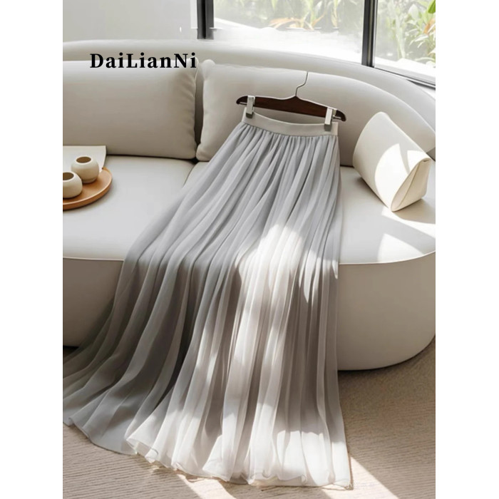 法式名媛時尚百褶裙2025春夏新款高級感輕熟風網紗半身裙女長裙
