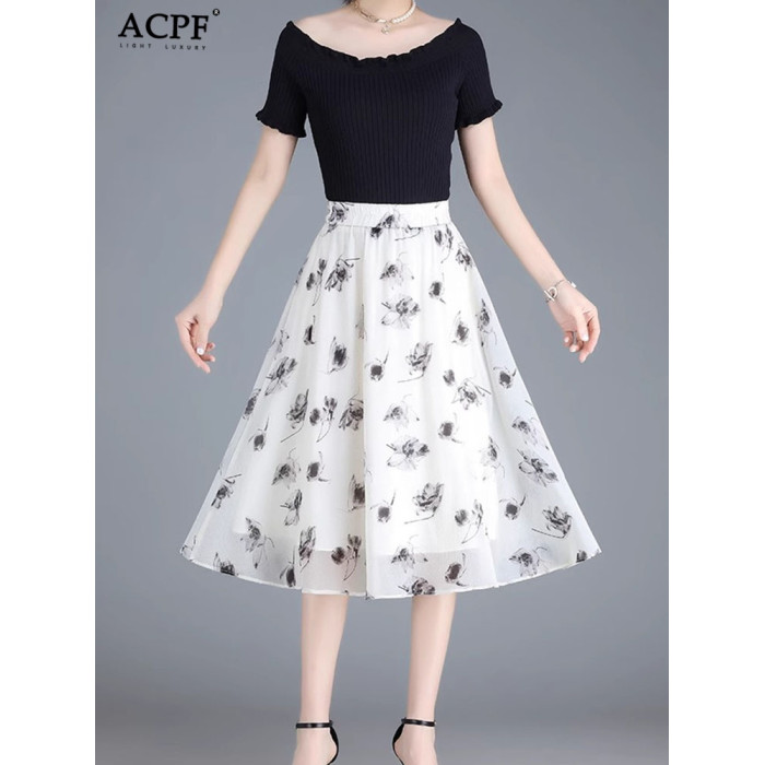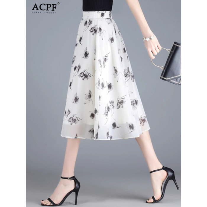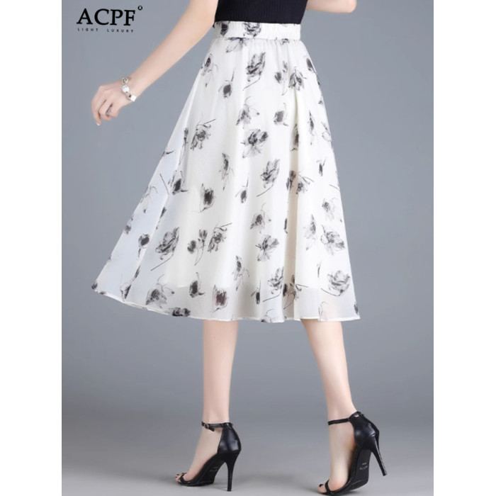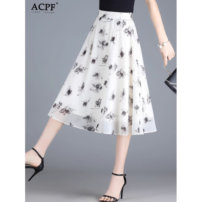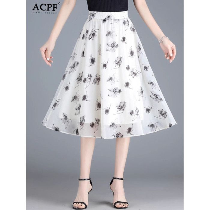 薄款雪紡半身裙女夏季新款輕熟風休閒舒適百搭垂墜感碎花A字繖裙