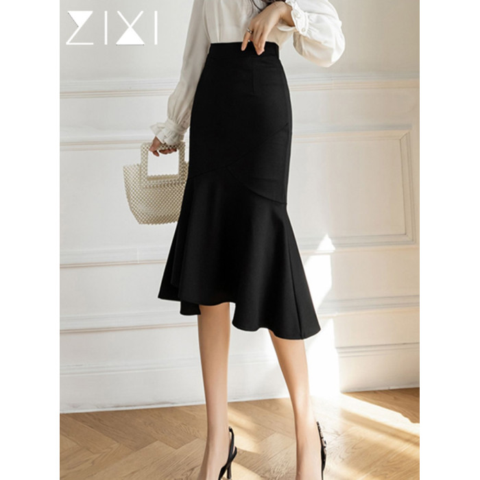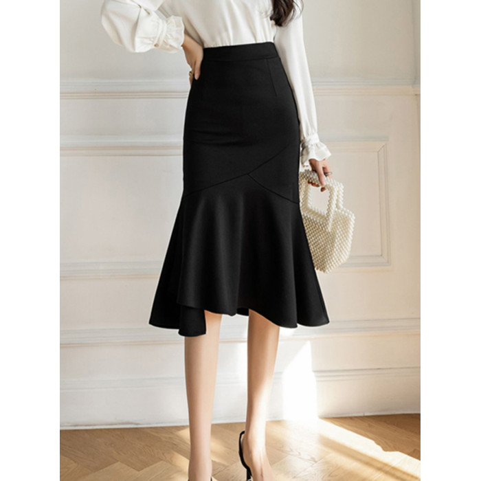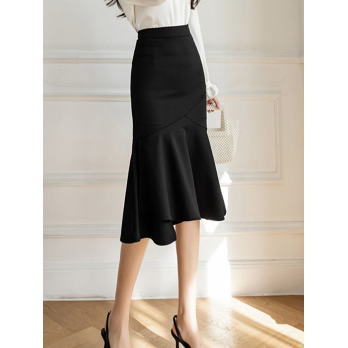 黑色半身裙女夏季2025新款春秋顯瘦a字魚尾裙包臀裙不規則中長裙