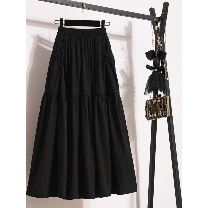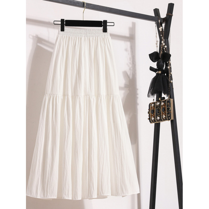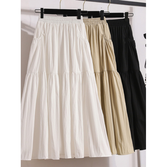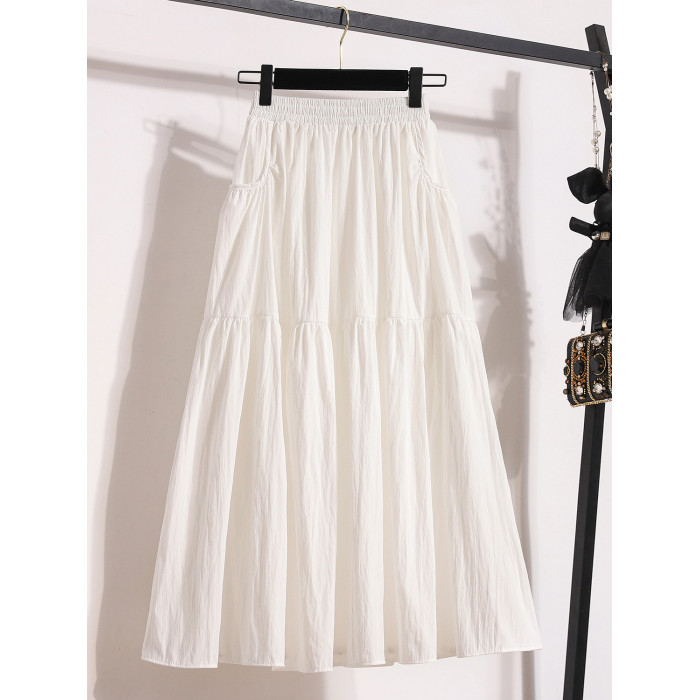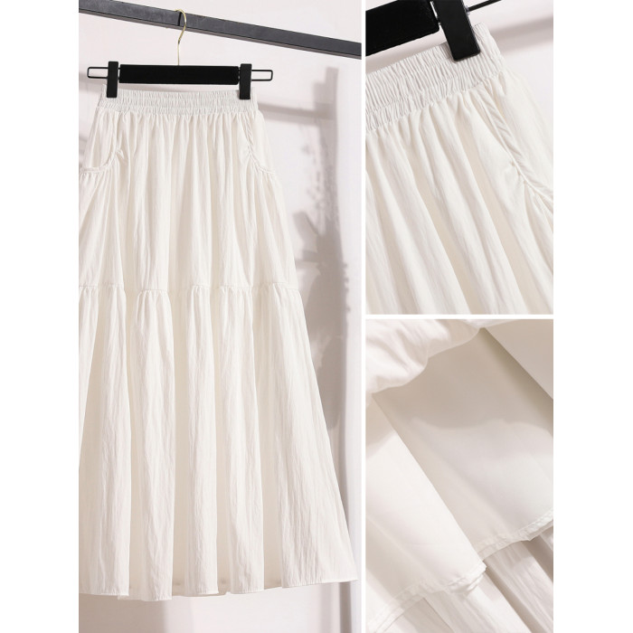 白色口袋半身裙女夏季2025新款中長裙小個子仙女高腰顯瘦蛋糕裙子