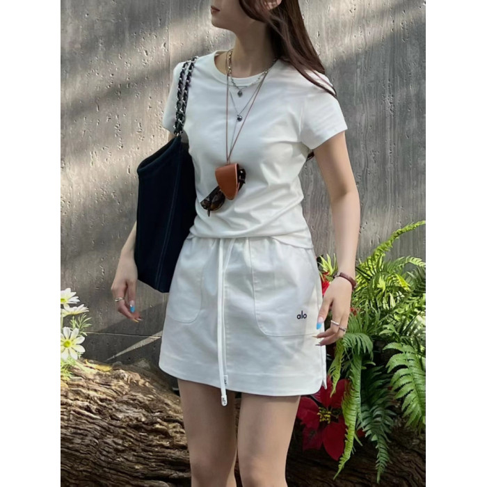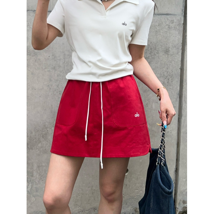 歐洲站2025夏季新款歐貨顯瘦百搭松緊抽繩alo字母刺綉a字半身短裙