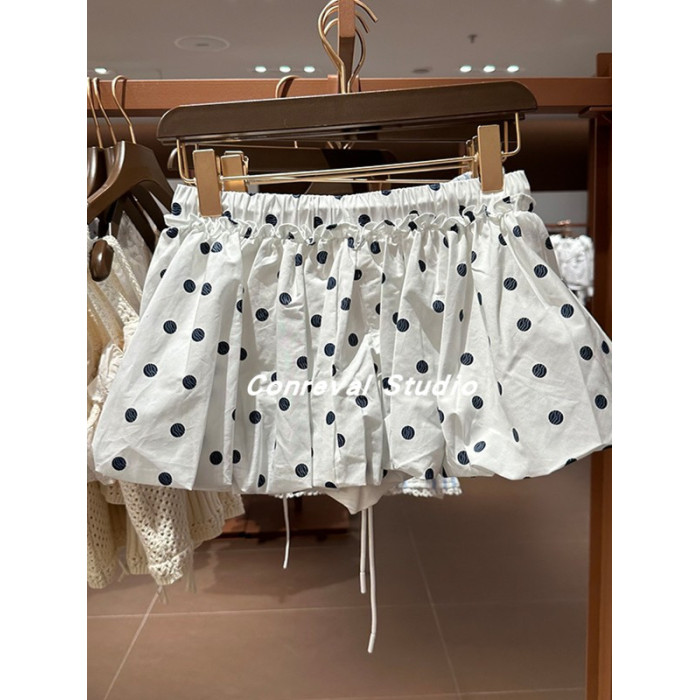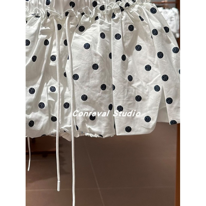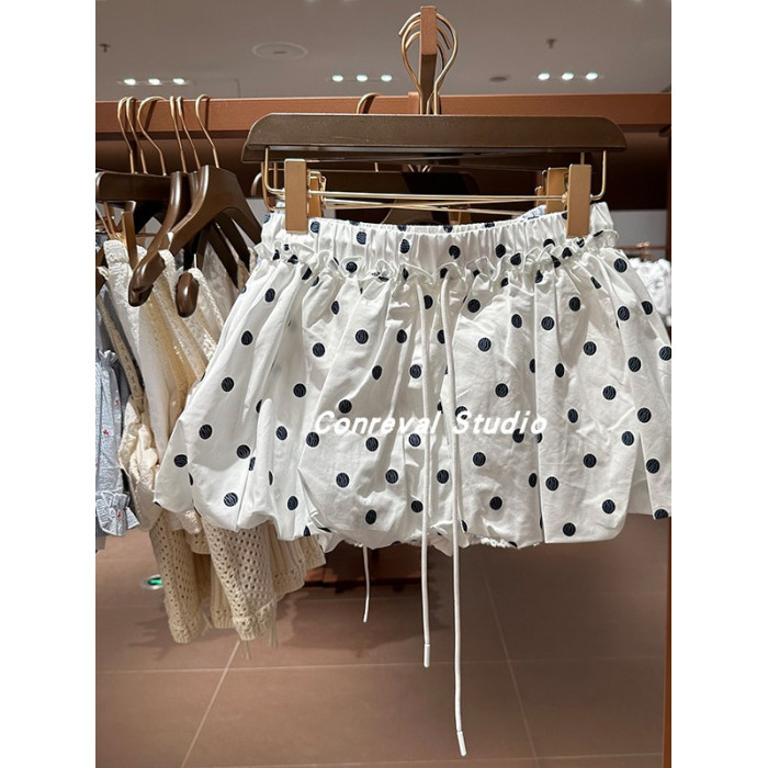 SH&UR2025夏季新款女裝甜美俏皮撞色印花短款波點花苞半裙半身裙