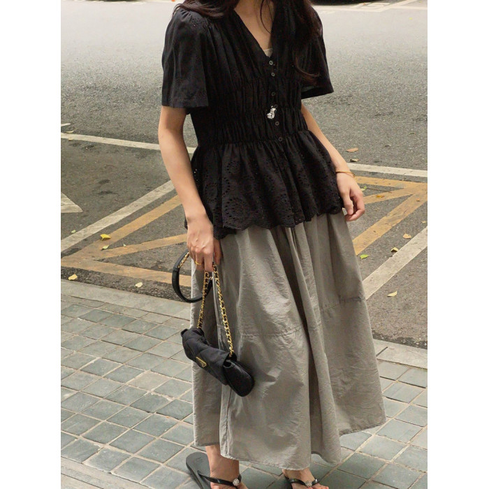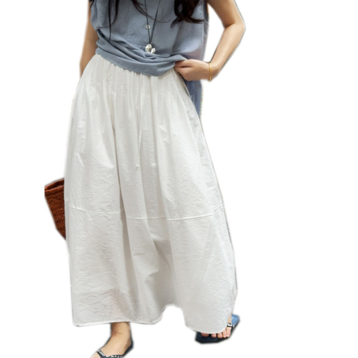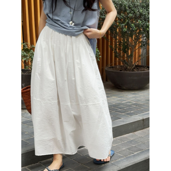 23309# 王玨家 夏季超薄褶皺松緊腰立體裁剪花苞裙休閒半身裙