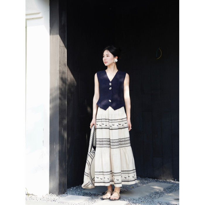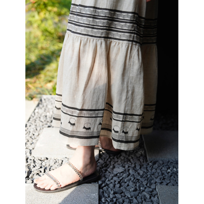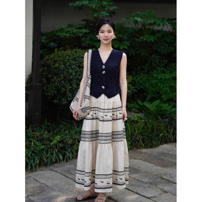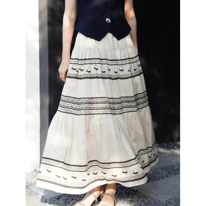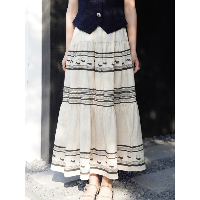 2025夏季新款復古亞麻做舊圖騰印花波西米亞風半身裙長裙