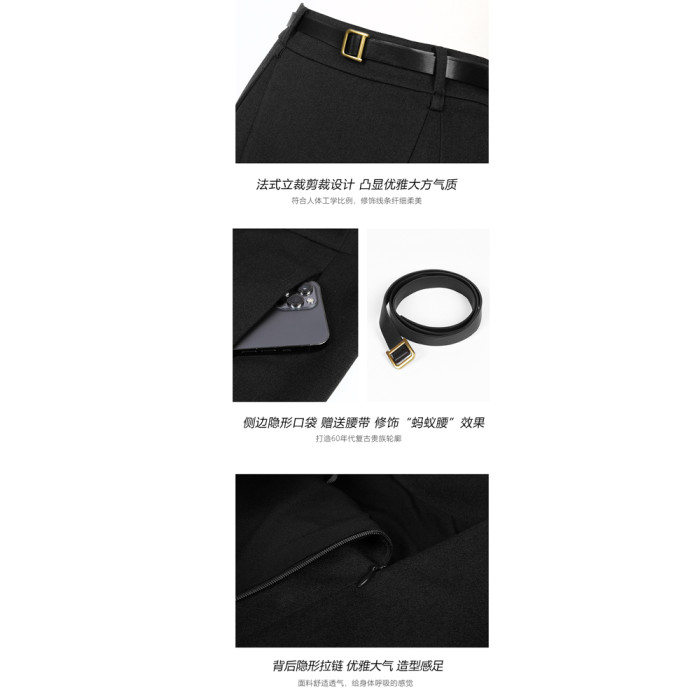 繖裙半身裙女法式赫本風高腰黑色半裙西裝a字遮胯長裙春夏高級感