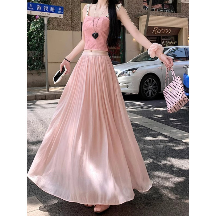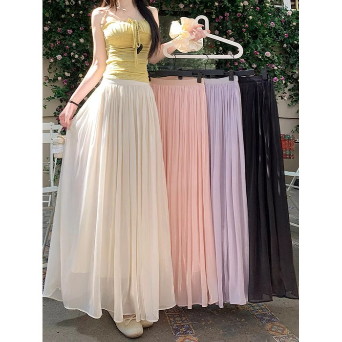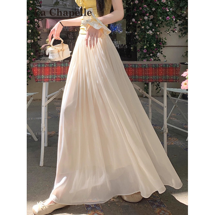 拉夏貝爾流光紗白色半身裙女夏季高腰a字顯瘦法式高級感大擺繖裙