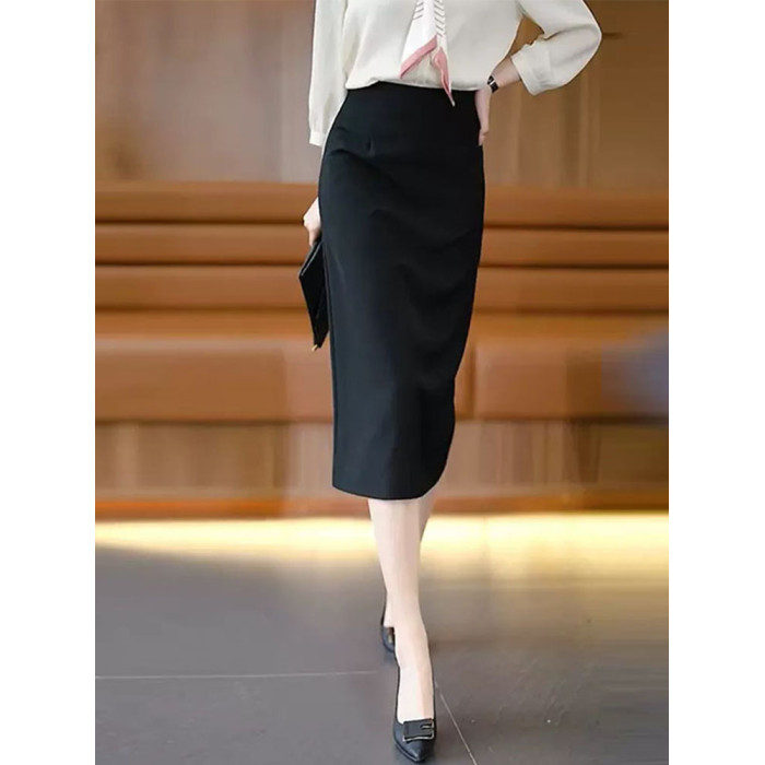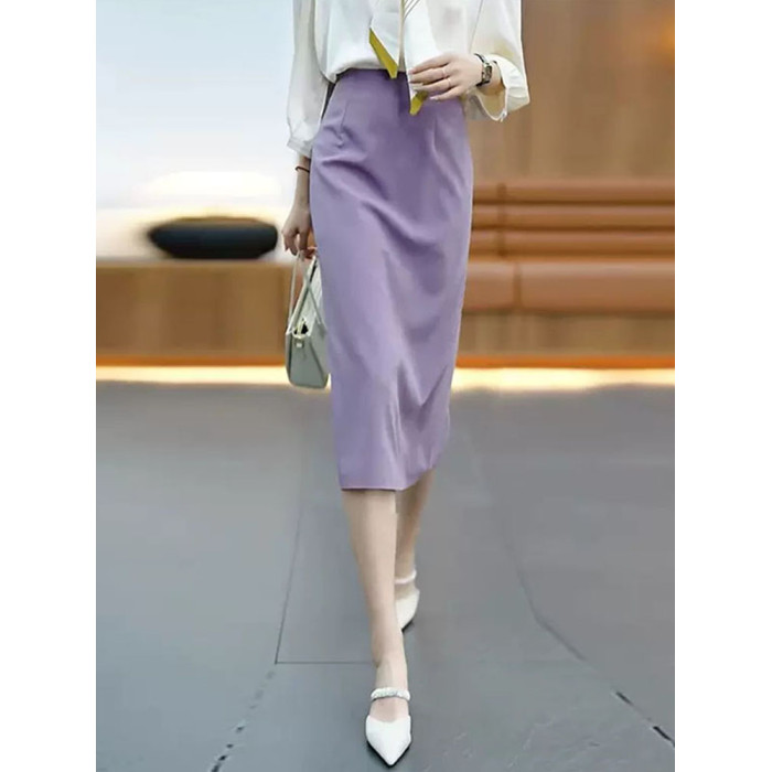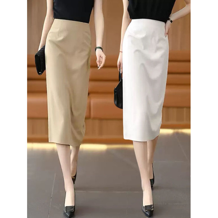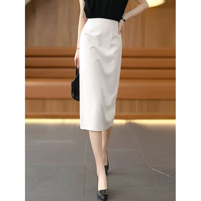 白色西裝半身裙女2025春夏款高腰過膝中長款a字一步裙直筒包臂裙