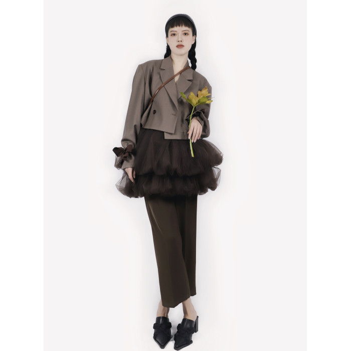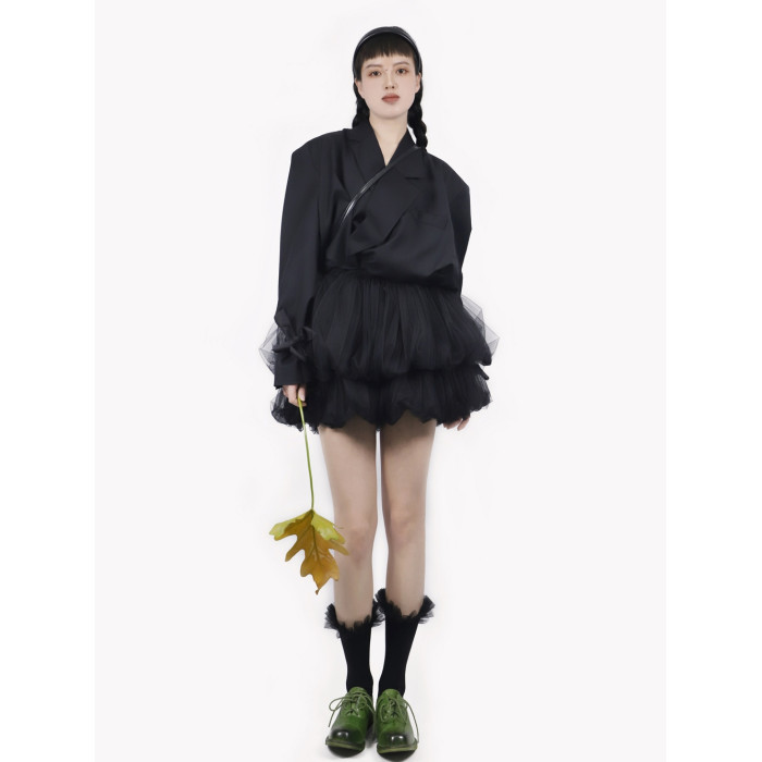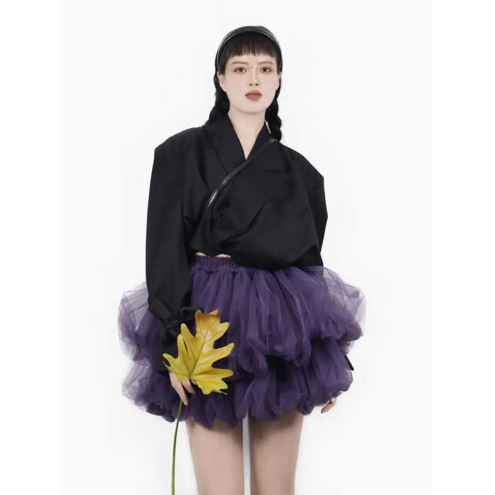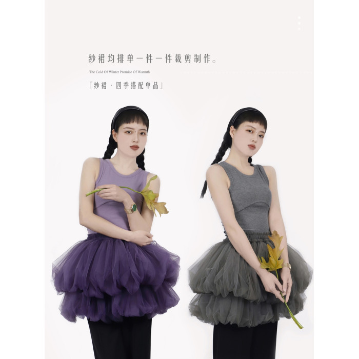 TEATREE/原創花苞裙網紗蓬蓬裙小個子半身短裙曡穿甜酷少女感紗裙