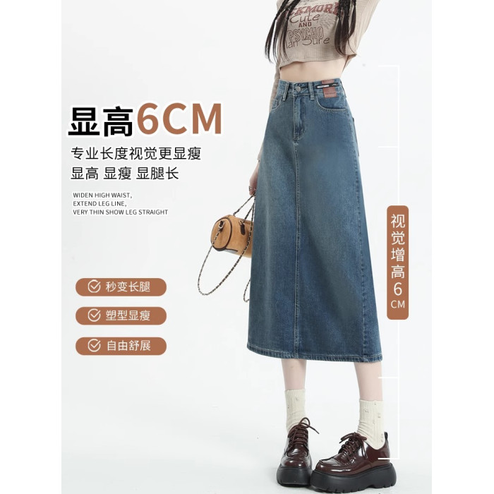 拉夏貝爾開叉牛仔半身裙女春夏2025新款秋季a字遮胯中長款包臀裙