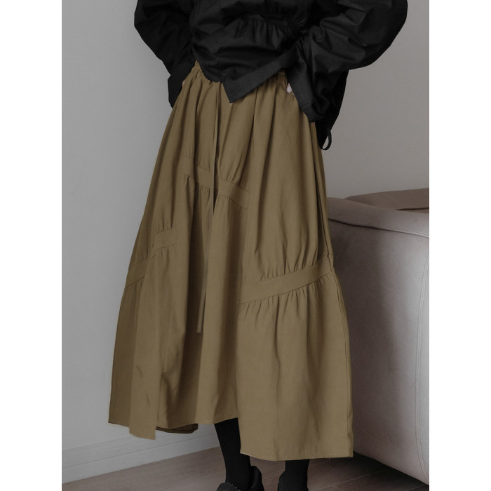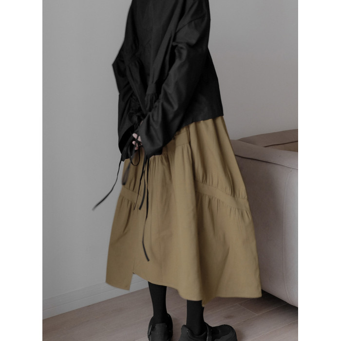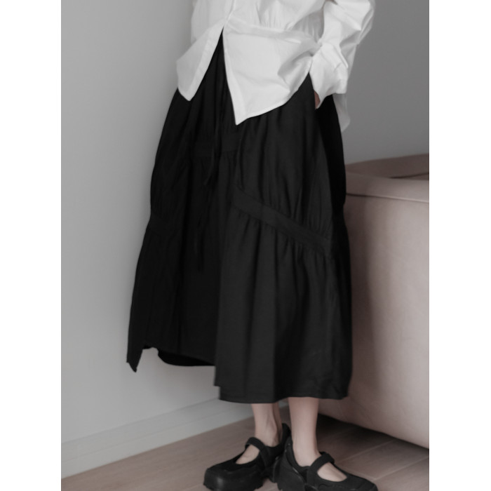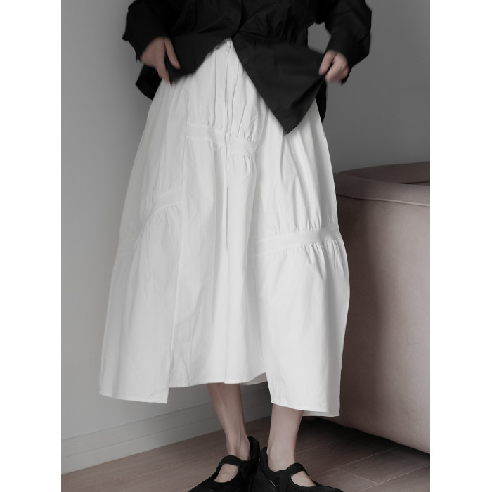 鹿人出品 / 山本暗黑風不規則褶皺高腰顯瘦廓形a字氣質白色半身裙