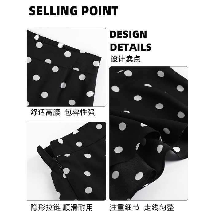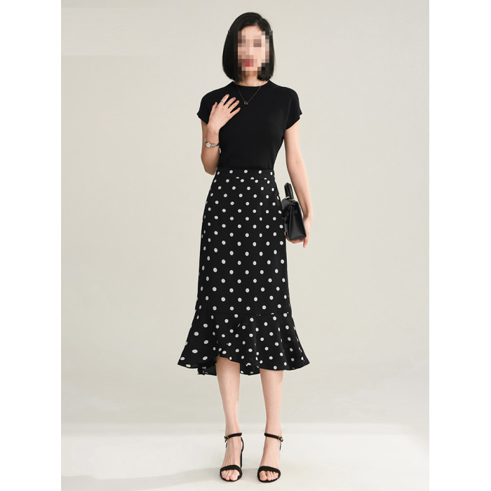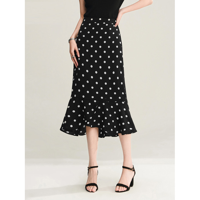 波點半身裙女夏季新款大碼不規則荷葉邊包臀魚尾裙中長款雪紡裙