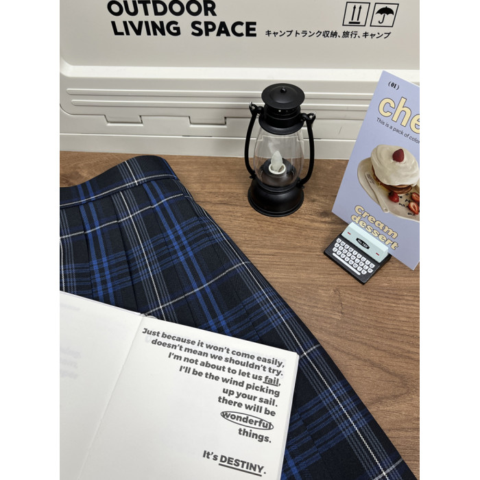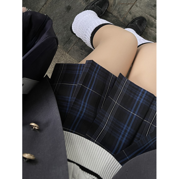 胖頭魚jk原創正版黑藍格裙校供日系秋冬季百褶裙大碼短裙【夜闌】