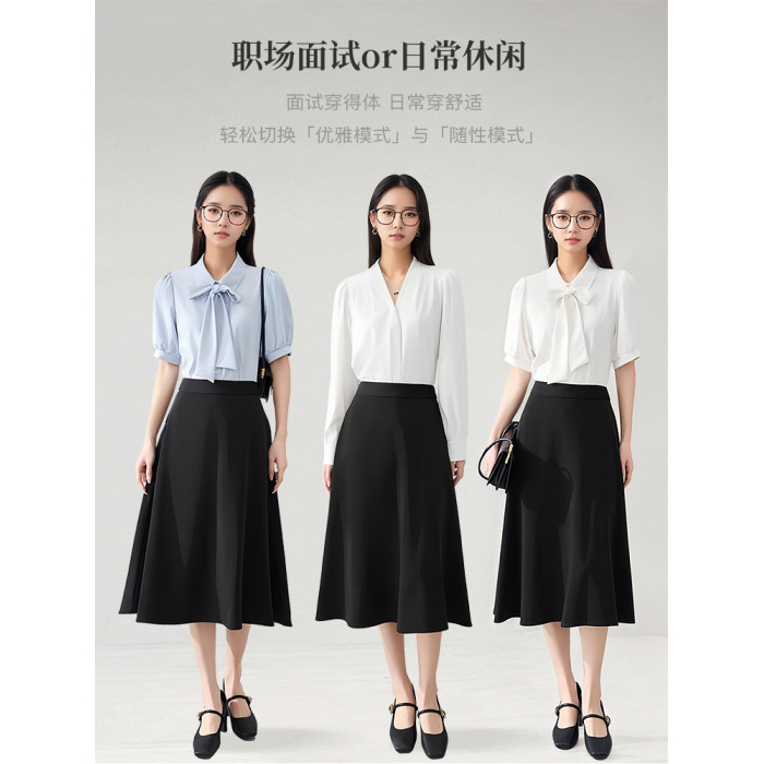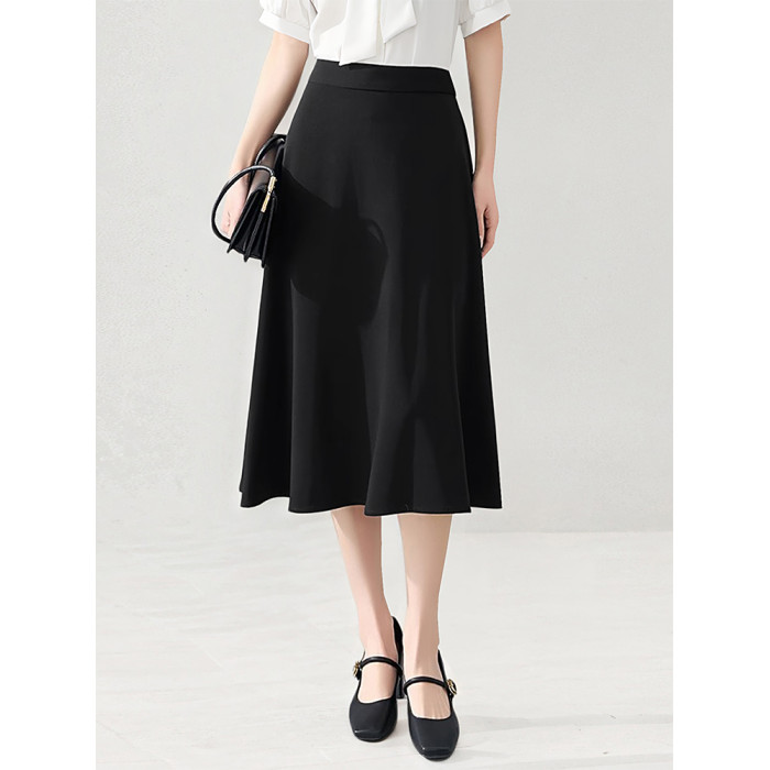 【單件夏款】黑色中長款大擺繖裙半身裙【涼感面料】|【抗皺垂順】