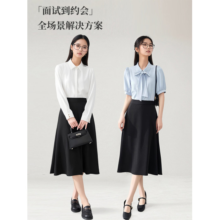 黑色a字大擺裙女夏季正裝繖裙職業半裙面試裙子中長款西裝半身裙