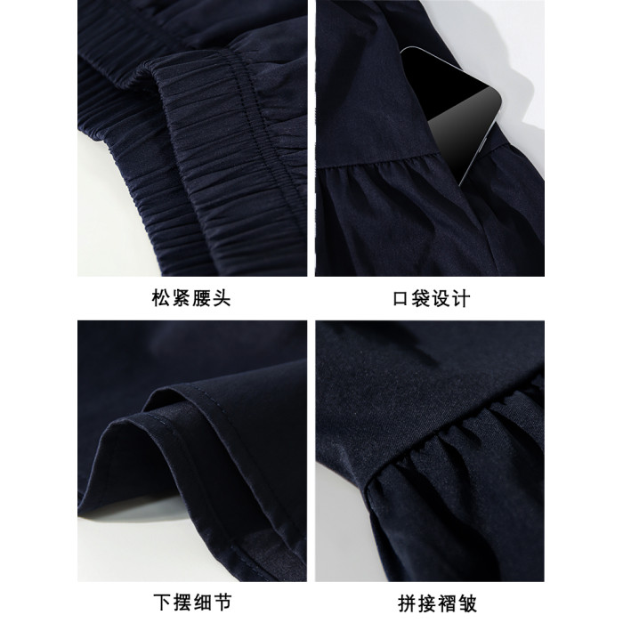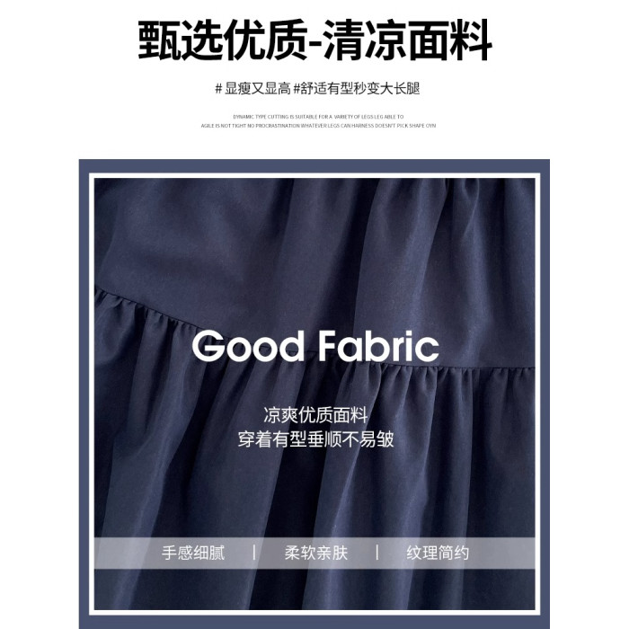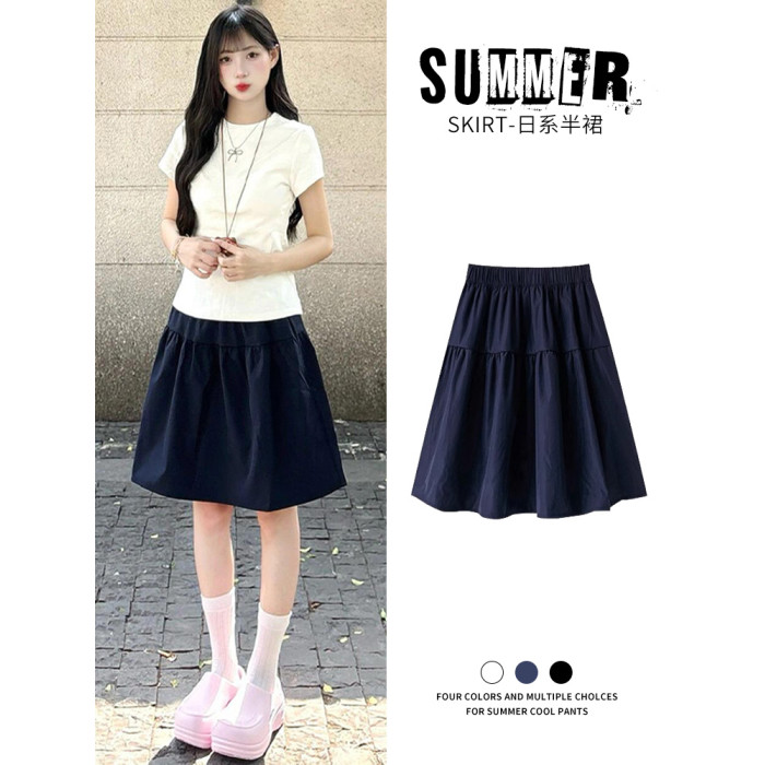 藏青日系半身短裙女夏2025新款高腰百搭顯瘦a字學院風小個子半裙