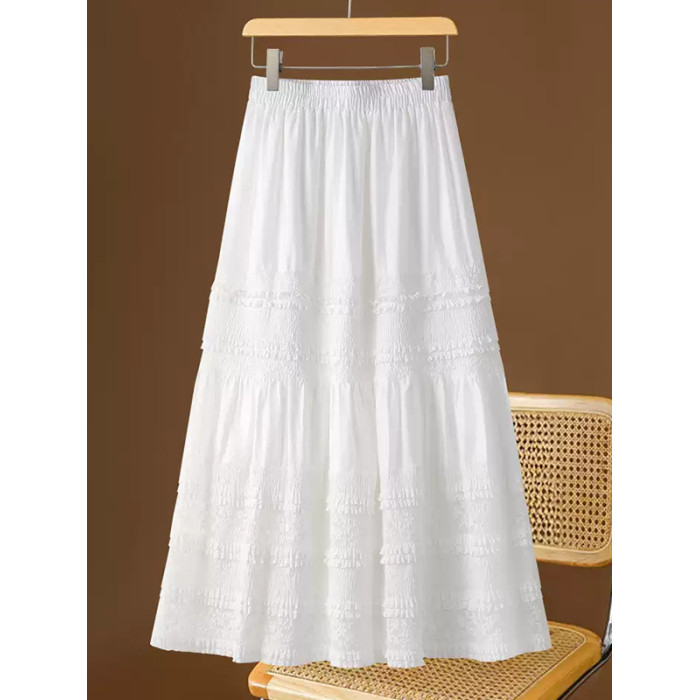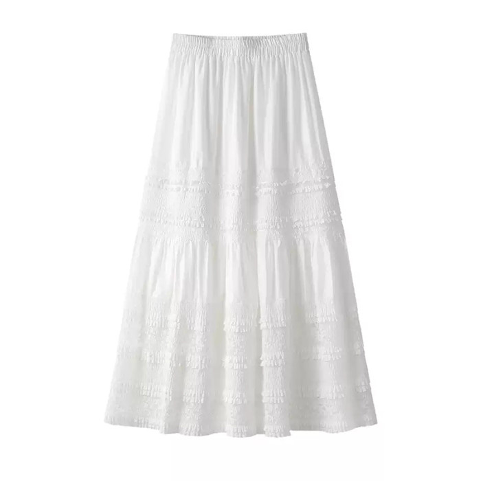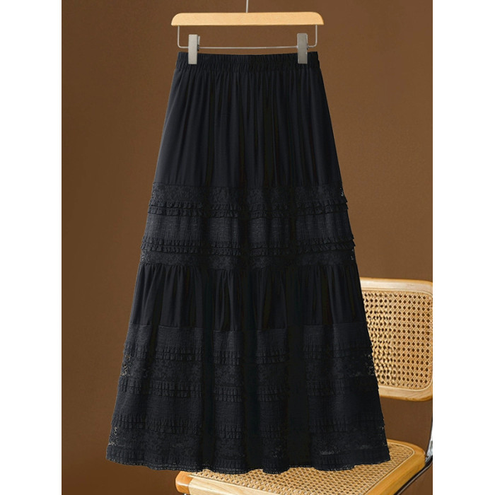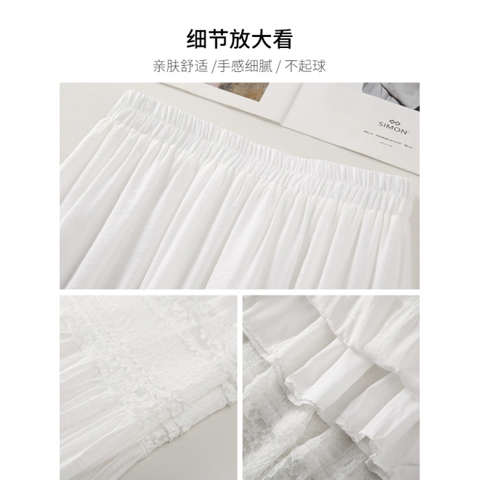 拉夏貝爾2025春夏新款今年流行爆款蕾絲拼接白色小個子蛋糕半身裙